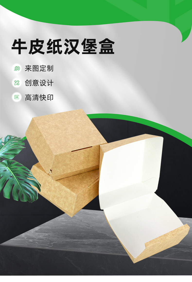不同尺寸、盒型的牛皮紙漢堡盒。全定制、輕定制及公版現(xiàn)貨&一件代發(fā)。