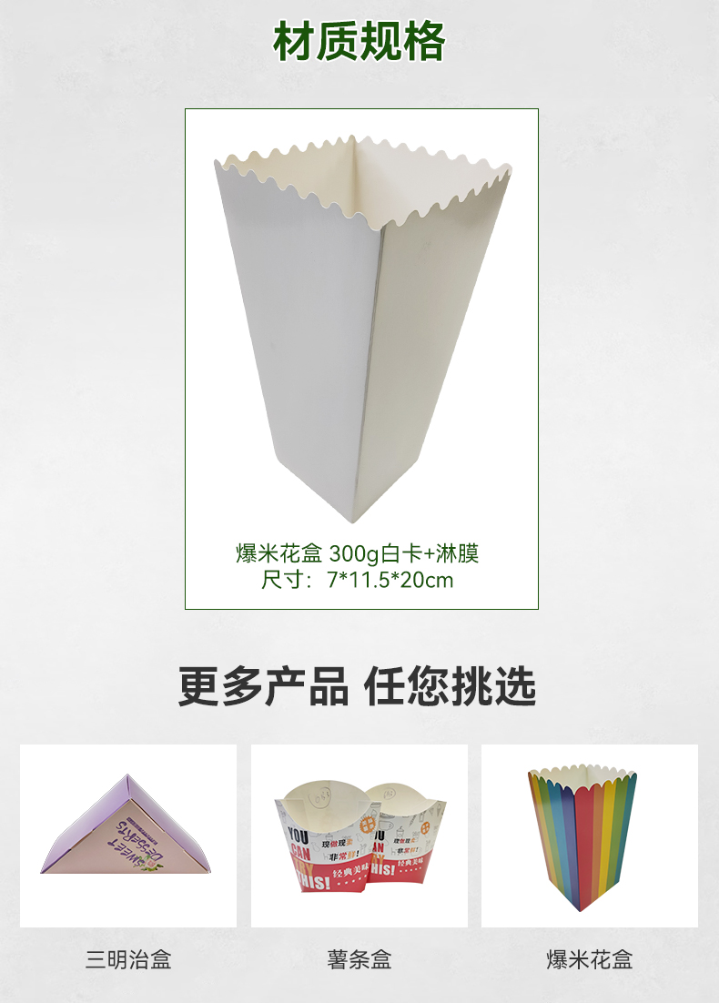 特價(jià)爆米花盒現(xiàn)貨一件起批,售完即止。另有雞米花盒、薯?xiàng)l盒、三明治盒等小吃盒現(xiàn)貨批發(fā),也可定制。