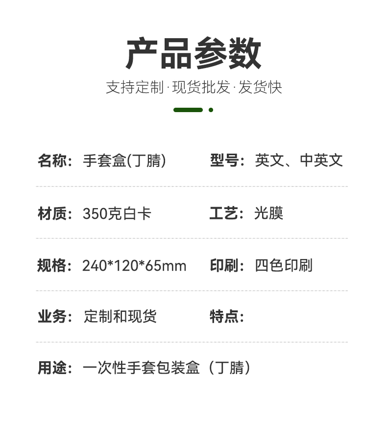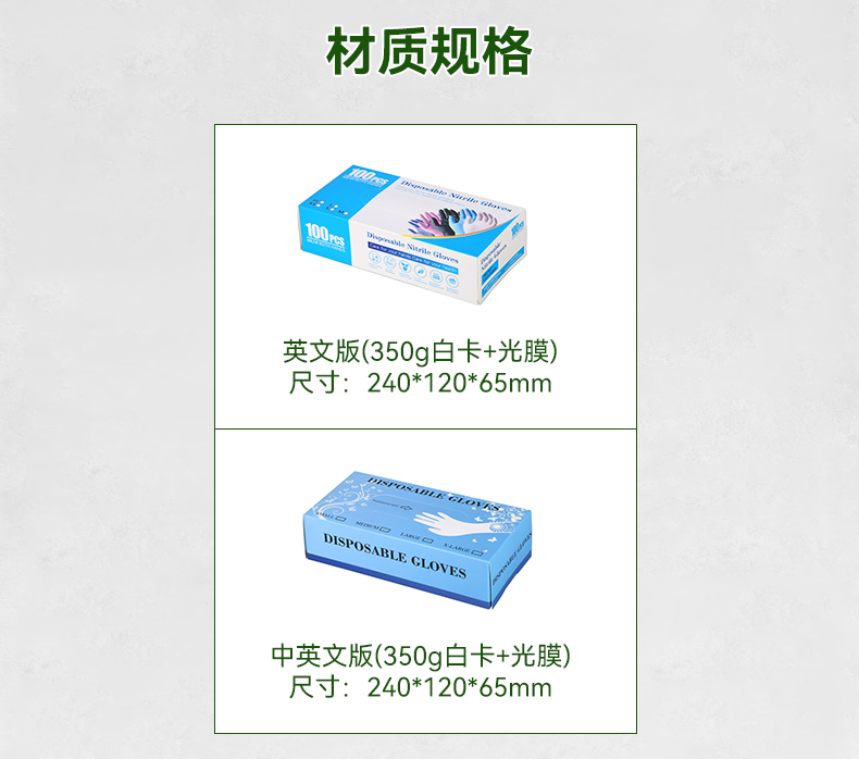 一次性手套盒輕定制 丁腈手套盒:盒型和尺寸固定,可個(gè)性化印刷,5000個(gè)起做。