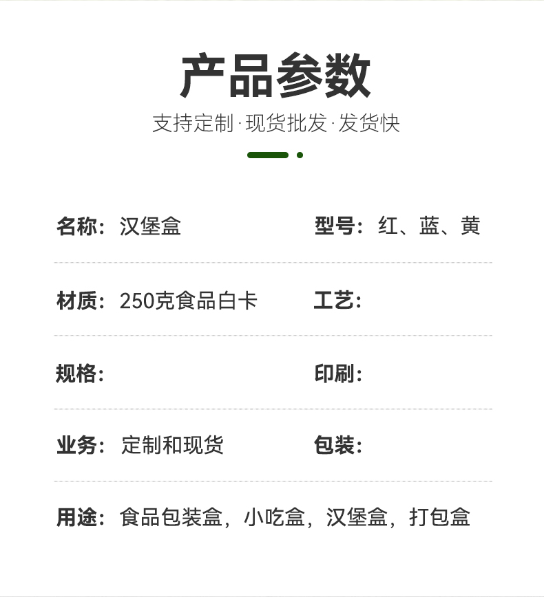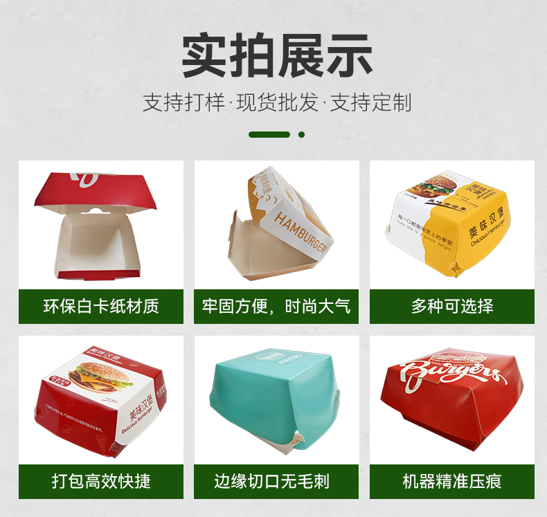 食品白卡漢堡盒,多種尺寸,淋膜和非淋膜工藝,過(guò)油,過(guò)膠。